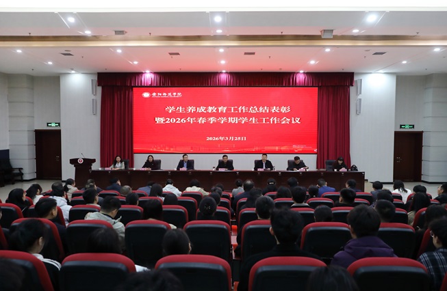 3月25日上午,我校在文博楼二楼报告厅召开学生养成教育总结表彰会暨2026年春季学期学生工作会议。校党委副书记王宏伟、副校长时斌,党委学生工作部、党委研究生工作部、团委、学生就业指导服务中心、心理健康教育与咨询中心等部门全体人员,各学院党委副书记、辅导员及获奖学生代表参加会议。时斌主持会议。
