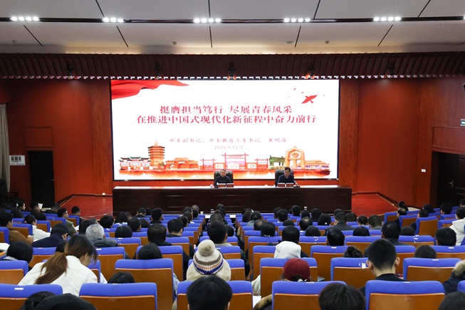 黄明海以《挺膺担当笃行 尽显青春风采 在推进中国式现代化新征程中奋勇前行》为题,从“把握时代方位,深刻领会四中全会精神的丰富内涵”“担当青春使命,奋力书写无愧于韶华的成长答卷”“服务科技强省,保障在安高校高质量内涵式发展”三个方面,系统阐释了“十四五”期间我国发展取得的重大成就,“十五五”时期国内外发展环境的机遇挑战,未来五年经济社会发展的宏伟蓝图。对我校办学事业发展给予了充分肯定。