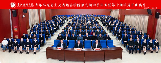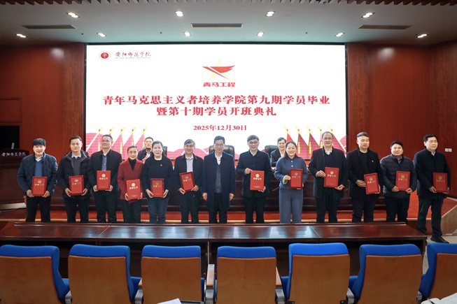 12月30日下午,我校青年马克思主义者培养学院第九期学员毕业暨第十期学员开班典礼在勤业楼阶梯会议室举行。校党委书记、青马学院院长孔国庆,校党委副书记、青马学院副院长王宏伟,副校长、青马学院副院长时斌,青马学院成长导师、专业导师,各学院党委副书记、分团委负责人,青马学院九期、十期全体学员参加典礼。典礼由王宏伟主持。