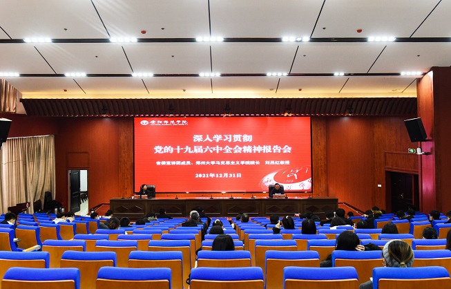 12月31日上午,按照省委高校工委、省教育厅的统一安排,省委宣讲团成员、郑州大学马克思主义学院院长刘吕红到我校作学习贯彻党的十九届六中全会精神宣讲报告。校党委副书记魏光峰,党委宣传部全体成员、各学院党委副书记、辅导员、马克思主义学院教师和学生代表聆听报告会。魏光峰主持报告会。