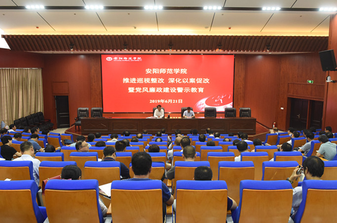 6月21日下午,我校在勤业楼一楼阶梯会议室开展推进巡视整改深化以案促改暨党风廉政建设警示教育。全体在校校领导、全校中层领导人员参加会议。校党委书记纪多辙讲话,纪委书记路阳主持会议。