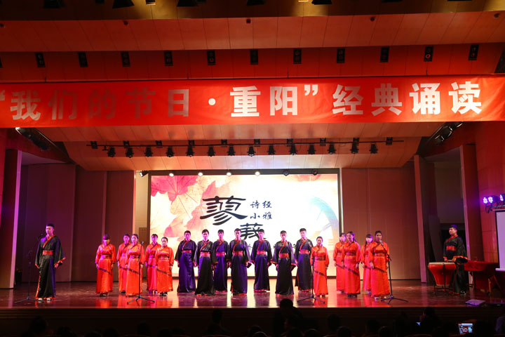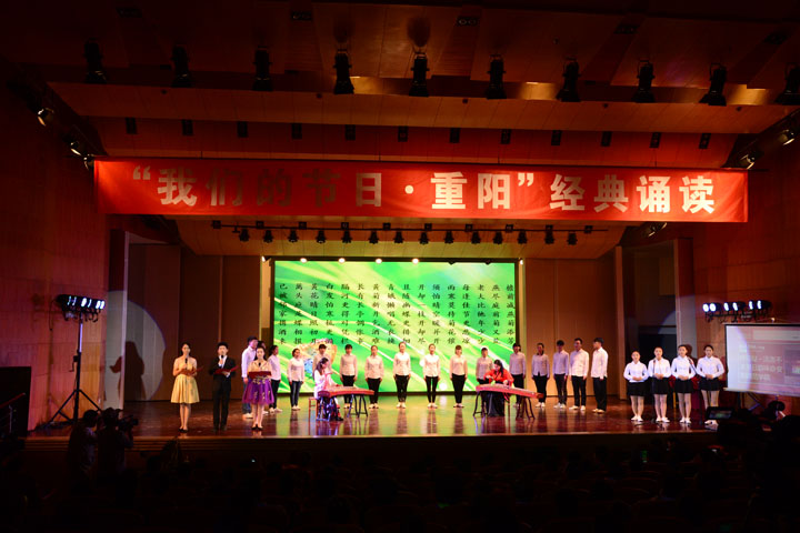 为培育和践行社会主义核心价值观,营造传统文化节日氛围,弘扬中华民族“孝老、尊老、爱老”的传统美德,10月20日下午,校文明办与安阳市文明办、高新区文明办联合主办、文学院承办的“我们的节日·重阳”经典诵读在音乐厅举行。安阳市文明办副主任郭煜春、高新区文明办主任付晓燕,我校副校长张建国,相关职能部门、院系负责人及部分师生400余人观看了演出。