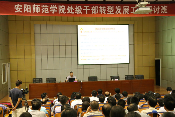 为贯彻落实国家和我省有关文件精神,统一思想,提高认识,理清思路,切实推进我校转型发展,8月31日,我校在逸夫楼一楼学术报告厅举办转型发展处级干部研讨班。全体校领导出席开班仪式。我校全体处级干部参加会议。校党委副书记、纪委书记纪多辙主持开班仪式。合肥学院党委书记蔡敬民教授应邀为研讨班作辅导报告。