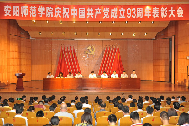 在中国共产党成立93周年之际,7月1日下午,我校在音乐厅隆重召开庆祝建党93周年表彰大会。校领导郑邦山、赵卫东、鲁俊生、纪多辙、刘宏飞、朱登潮、杨新新、姚远峰、魏光峰,党群职能部门负责人,各基层党委书记、副书记,受表彰的先进党组织代表和优秀党员代表参加了大会。表彰大会由院长赵卫东主持。