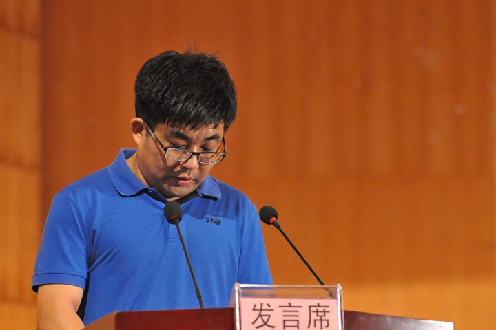 先进基层党组织代表、传媒学院党委书记关盼军发言