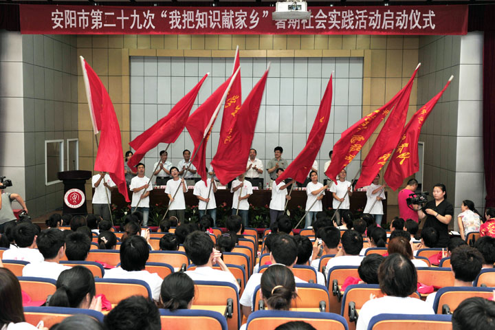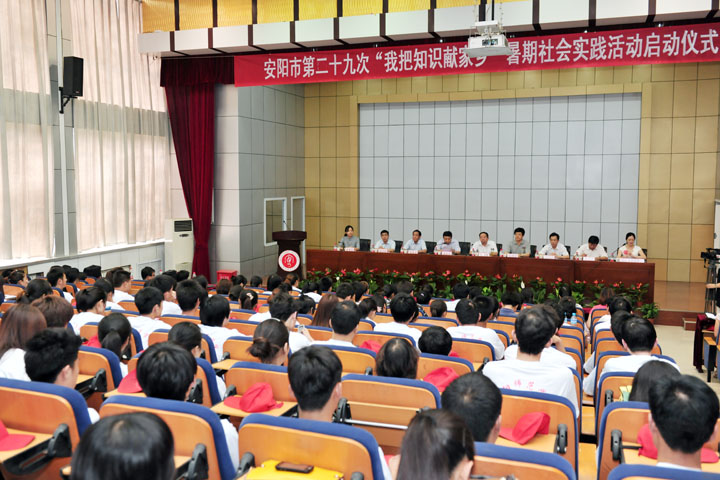 6月27日下午,我校2012年暑期社会实践活动启动仪式在逸夫楼一楼学术报告厅举行。安阳市第二十七次“我把知识献家乡”暑期社会实践活动同时在我校启动。