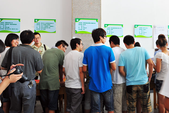 仪式结束后,刘国辉一行在我校领导郑邦山、鲁俊生及团委负责同志的陪同下来到了我校“共青团青年就业创业见习基地暑期岗位对接会”的现场参观指导。