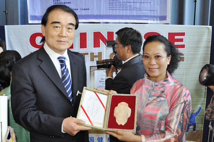 在中国传统文化讲座中,杨新新教授声情并茂地向与会的联合国官员、各国外交官展示了中国安阳甲骨文的独特魅力,详细阐释了甲骨文中“安”字的意义和中国结的来历。在中国书画展上,金玉甫博士书写的甲骨文对联、甲骨文扇面等五幅作品展出,得到广泛好评,并被联合国中国书会收藏。同时,杨新新副院长代表学校向中国常驻联合国代表李保东大使赠送了甲骨片。李保东大使对我校参加“联合国中文日”活动的行为表示赞赏和由衷的谢意。