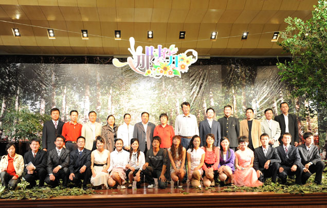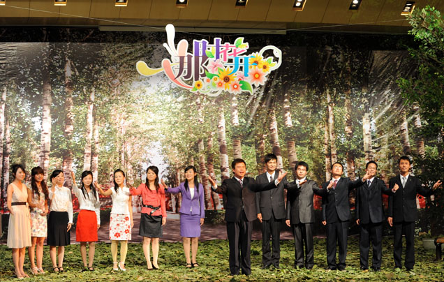 朗诵会最后,校领导走上舞台,与参加朗诵的校友合影留念。
