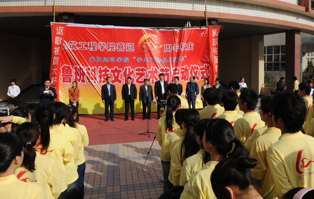 为迎接学校60周年校庆,10月16日下午,由我校学生工作处主办、建筑工程学院承办的“学生工作品牌工程”鲁班科技文化艺术节启动仪式在和鸣楼西大厅举行。校领导鲁俊生、纪多辙、朱登潮、姚远峰,宣传部、学生处、教务处、团委等部门负责人,建筑工程学院、工商管理学院、教育科学学院和经济学院师生参加了启动仪式。仪式由建筑工程学院党总支书记杨露主持。